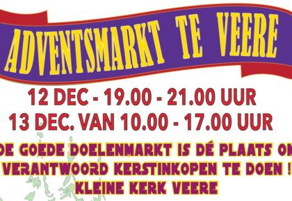 Adventsmarkt – Goededoelenmarkt op 12-13 december 2025 De Veerse adventsmarkt is een bijzondere markt, omdat deze gehouden wordt in de mooie en verwarmde Kleine Kerk van Veere. Beslist een aanrader voor jong en oud. Kerst in Veere Kerstmis, of kerstfeest,...